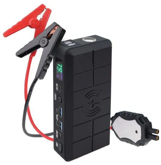 Includes: High capacity Car Jump Starter Smart Jumper cable USB to C charging cable 3 in 1 device charging cable Type C 12V Charger User manual Features: Jump Start Capable of cranking 12V 6.0LGasoline engine and UP to 3.0L Diesel engine Charge electronics devices Cell phone, PSP, MP3/MP4/MP5,Tablet PC(Ipad), PDA LED display Showing power level,output voltage,and real-time current detecting function LED work light Cycle for High>Low> SOS modes Built-in protection Short Circuit protection, thermal protection or reverse connected protection Standby Time Battery standby for more than 1years with switch off. Specifications: Battery Type: Lithium Cobalt (Lico O2) Capacity: 10400mAh/38.48Wh Unit Dimensions: 158mm (H) X 75mm (W) X 30mm (L) Input: 5V/9V/12V/15V/20V – Max 30W Output USB Output: 5/9/12V Max 18W Protocol : QC3.0 Type-C Output: 5/9/12V Max 24W Protocol:PD+QC Starting Current: 500A (<3S) Peak Current: 1000A Operating Temperature: -20?~70? Lifetime >1000starts Warranty: 12 months