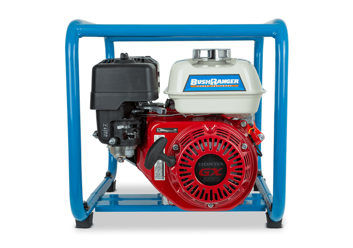 An ideal unit for fire fighting, water transfer and many other jobs that require water at pressure. The FFT201 features a handy twin pump. Our Bushranger pumps represent reliability, durability, and versatility. They are ideal for firefighting, water transfer and many other jobs that require water at pressure. This FFT201 Bushranger firefighting pump runs on petrol, features a twin impeller and is powered by a Honda GX200, 5.5hp engine which features oil alert cut out. It has a maximum water flow of 300 litres per minute.