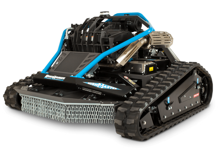 Bushranger Bushmaster RC800 Remote-controlled Incline Track Mower The Bushranger Bushmaster RC800 is built like a tank. With tracks for mowing in extreme conditions and a large 100 cm central cutting deck to maximize speed and agility. Designed for working on steep slopes up to 50°, it can cut in every direction and on any type of terrain, always maintaining the same grip to literally stick to the ground. It's Zero turning radius gives the ability to work in confined and narrow spaces. The Bushmaster is able to cope with any task and maintains a high work efficiency with the powerful 26 hp iGXV800 Honda EFI engine. All this is controlled safely from a distance with the personalized remote-control system.