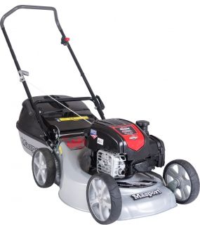 Storage is a major issue at most homes with little room for a lawnmower. Market leaders Masport and Briggs & Stratton have designed a concept to make storage easier and more efficient. Masport crafted exclusive handle system folds upright and then back on itself to create a sturdy base. Briggs & Stratton designed engine tips backwards up to 110 degrees without any fuel or oil leakage and is completely safe. This combination gives us the Masport Mow N'Stow® - a complete package that is innovative, powerful and versatile! Mow the grass, Stow the mower - Save significant shed space! Cut, Catch & Mulch Powered by Briggs & Stratton 150cc OHV Series 625EXi ReadyStart™ 4 stroke engine ReadyStart™ - no priming required and easy starting JUST CHECK & ADD™ - never change the oil, just check and add for the life of the engine Briggs & Stratton 'Mow N'Stow®' is innovated technology that allows this engine to be tipped or stored upright without any leakage of fuel or oil. 485mm (19") heavy duty steel chassis Masport Quadcut® 4 Blade Disc System for superior catching due to increased airflow Front 200mm (8") and Rear 200mm (8") adjustable dual bearing wheels Comfortable upturned upper handle with PVC grip Reinforced lower handle for added strength Camlocks for quick release handle fold down Handle Lift System HDPE Plastic Catcher with 'full' indicator Steel rear flap Zone start for comfortable starting position Masport Dual Mowzone® for edge to edge cutting for edge to edge cutting