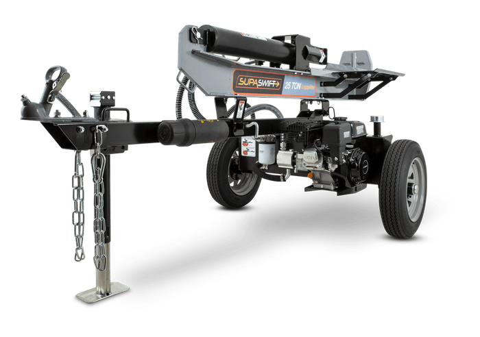 The SupaSwift 25-Ton log splitter provides quality and power at an affordable price. Fitted with a SupaSwift 6.5 hp (196 cc) engine, a manually activated auto return valve with an 10.9 second cycle time and quality features throughout this log splitter will provide many years of reliable service.